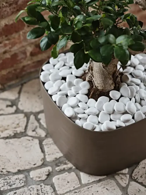 Zahvaljujući svom minimalističkom i čistom izgledu, bijelo dekorativno kamenje odličan je izbor za vrtove, terase, balkone, tegle za cvijeće, žardinjere, dekorativne pladnjeve ili unutarnje dekoracije. Bijela boja lijepo naglašava biljke i bez poteškoća se uklapa u moderne, prirodne ili industrijske ambijente.