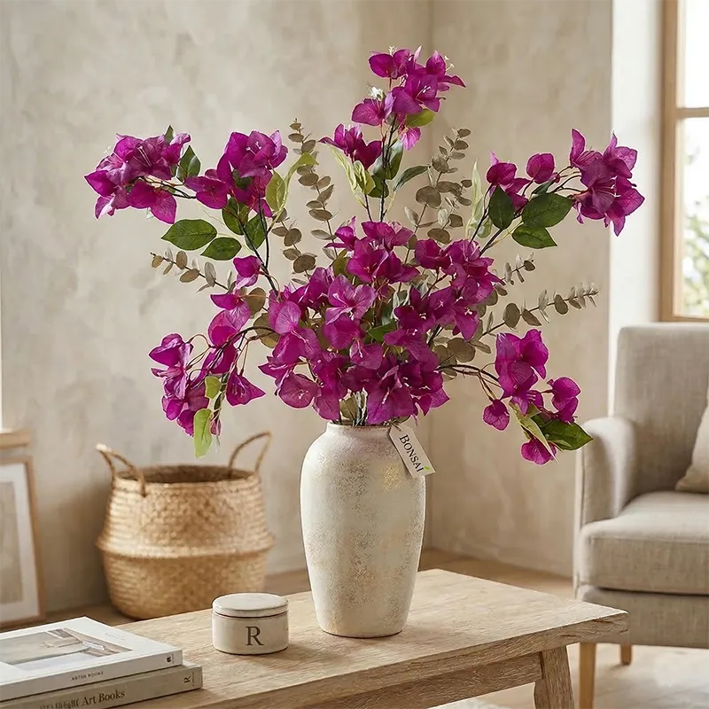 Umjetna grana Bugenvilija 78 cm ljubičaste boje odličnog prirodnog izgleda! Dodajte dašak mediteranskog šarma s ovom umjetnom grančicom Bugenvilije! Sa svojim realistično dizajniranim lišćem i prekrasnim ljubičastim cvjetovima, idealna je za dekoraciju unutarnjih prostora. Ne zahtijeva održavanje i uvijek izgleda svježe i lijepo. Duljina grančice je 78 cm, što omogućuje lako uklapanje u aranžmane ili kao samostalni ukras. Savršen izbor za dom, ured ili kao poklon!