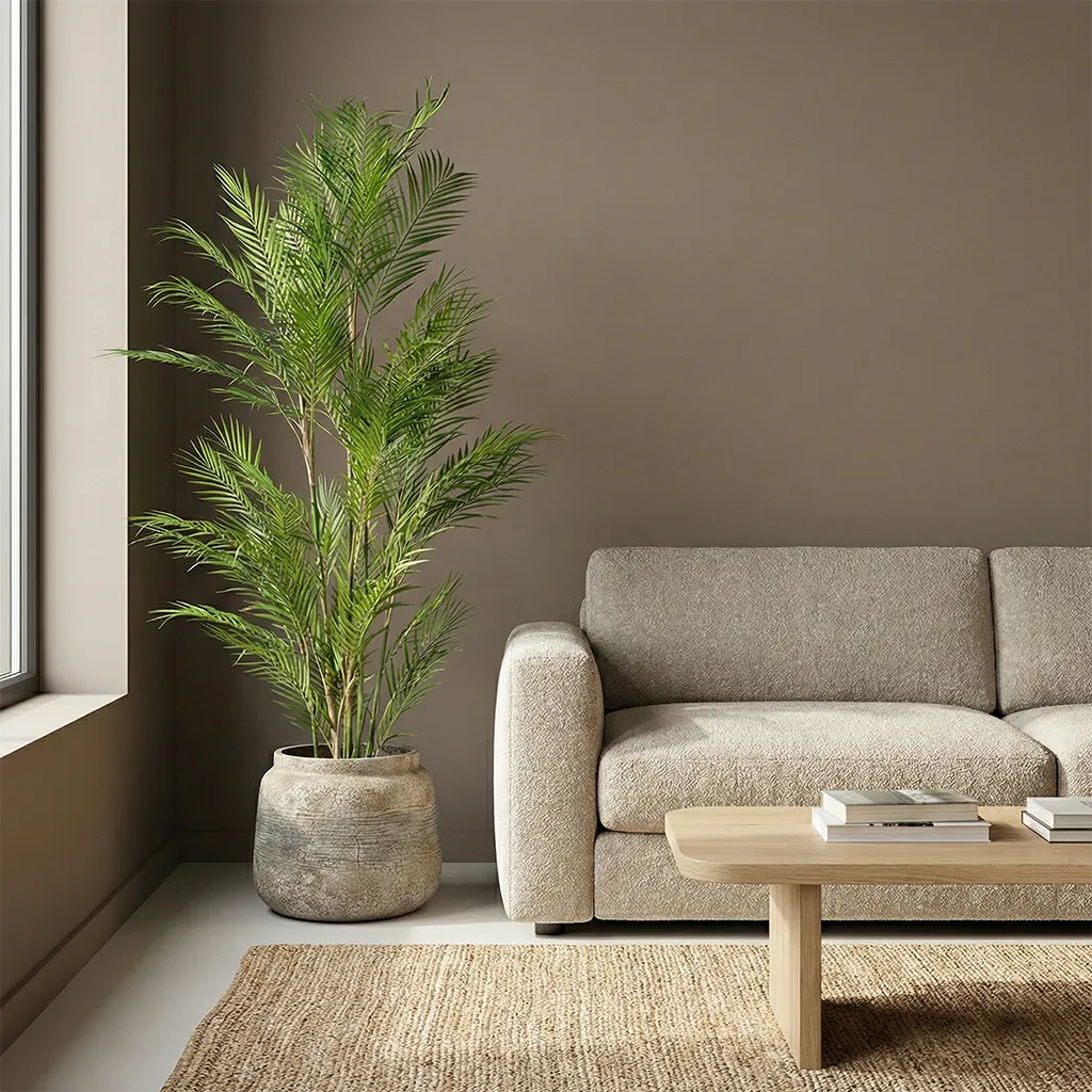 Umjetna palma Areka 180 ima prekrasan prirodni izgled. Izrađena je od kvalitetnih umjetnih materijala. Palma se može staviti u ukrasno teglu. Umjetne grane imaju odlične detalje i izrazito prirodnu zelenu boju zbog koje cijeli izgled palme izgleda iznimno realno. Palma Areka pogodna je za unutarnju upotrebu.