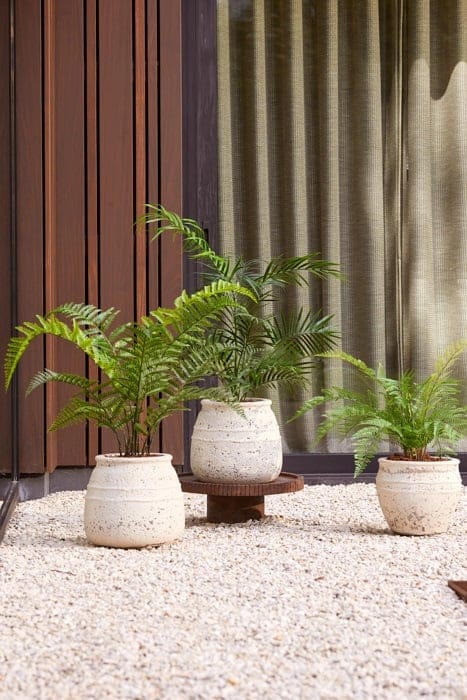 Umjetna palma dolazi u osnovnoj crni posudi, što omogućuje brzo i jednostavno postavljanje bez dodatnih troškova i pripreme. Dovoljno ju je smjestiti na željeno mjesto i odmah uživati u elegantnom zelenom detalju koji oplemenjuje prostor tijekom cijele godine. Preporučujemo, da jo stavite u ukrasnu teglu, kao što je na primer Mia tegla 28 cm.